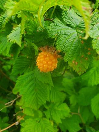 Never forget the salmonberries! They are delicious and want to take over your yard: