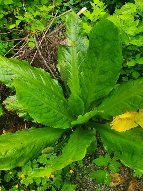 And last but not to be laughed at: the ginormous skunk cabbage. Around here skunk cabbage is known as nature’s tin foil. If you ever have the opportunity to roast a fish in your campfire, be sure to wrap it in skunk cabbage. You’ll be glad you did.