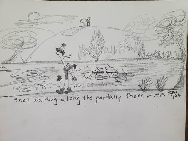 My sister Mary offers a brilliant counterpoint, stating that the snow and sleet accompany temperatures that are “as cold as a witch’s elbow.” My dear niece Helen says that walking on the surface of the sleet-enhanced snow is like, she imagines, walking across a giant dish of crème brulee. Such wonderful imagery; I guess I come by my creative flair honestly.
