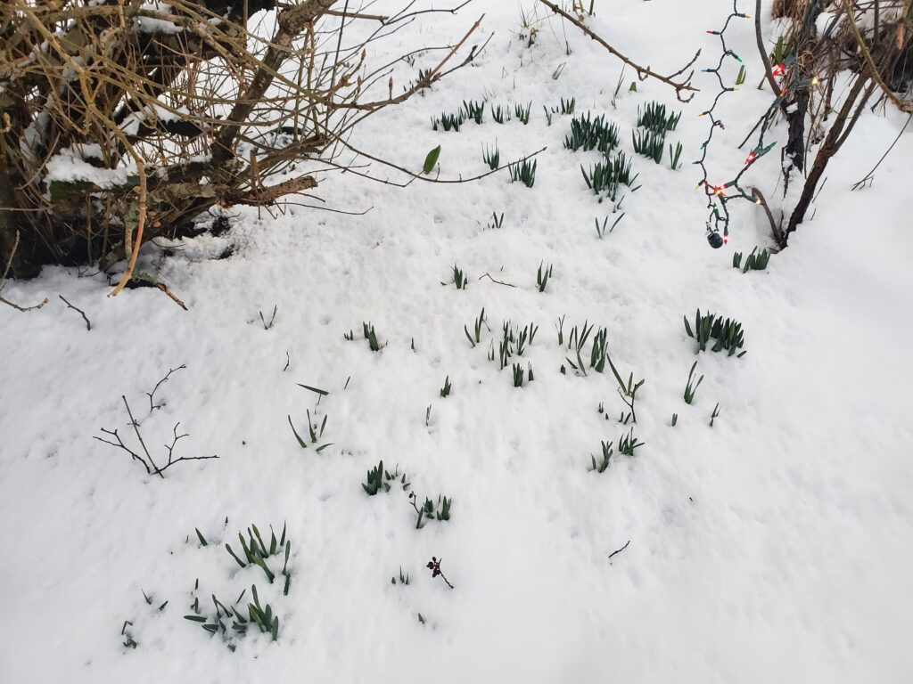 For your further edification: here are some crocuses coming up through the February snow: