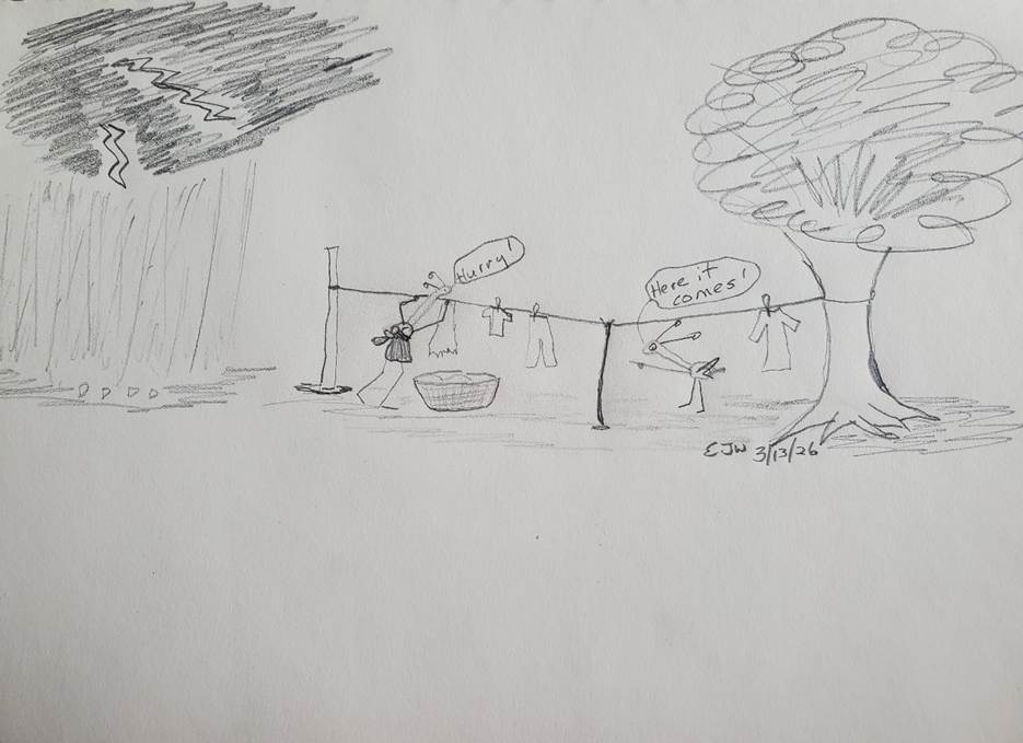 The wringers are out there, real and metaphorical. Clothes that have been flattened in that particular way need to be vigorously shaken out and placed out into the sunshine to regain their original shape. Works every time, but you have to time it when a thunderstorm comes along. I recall many times running for the clothesline to bring the dry clothes in before another drenching. Maybe there’s a sub-metaphor in there somewhere.
